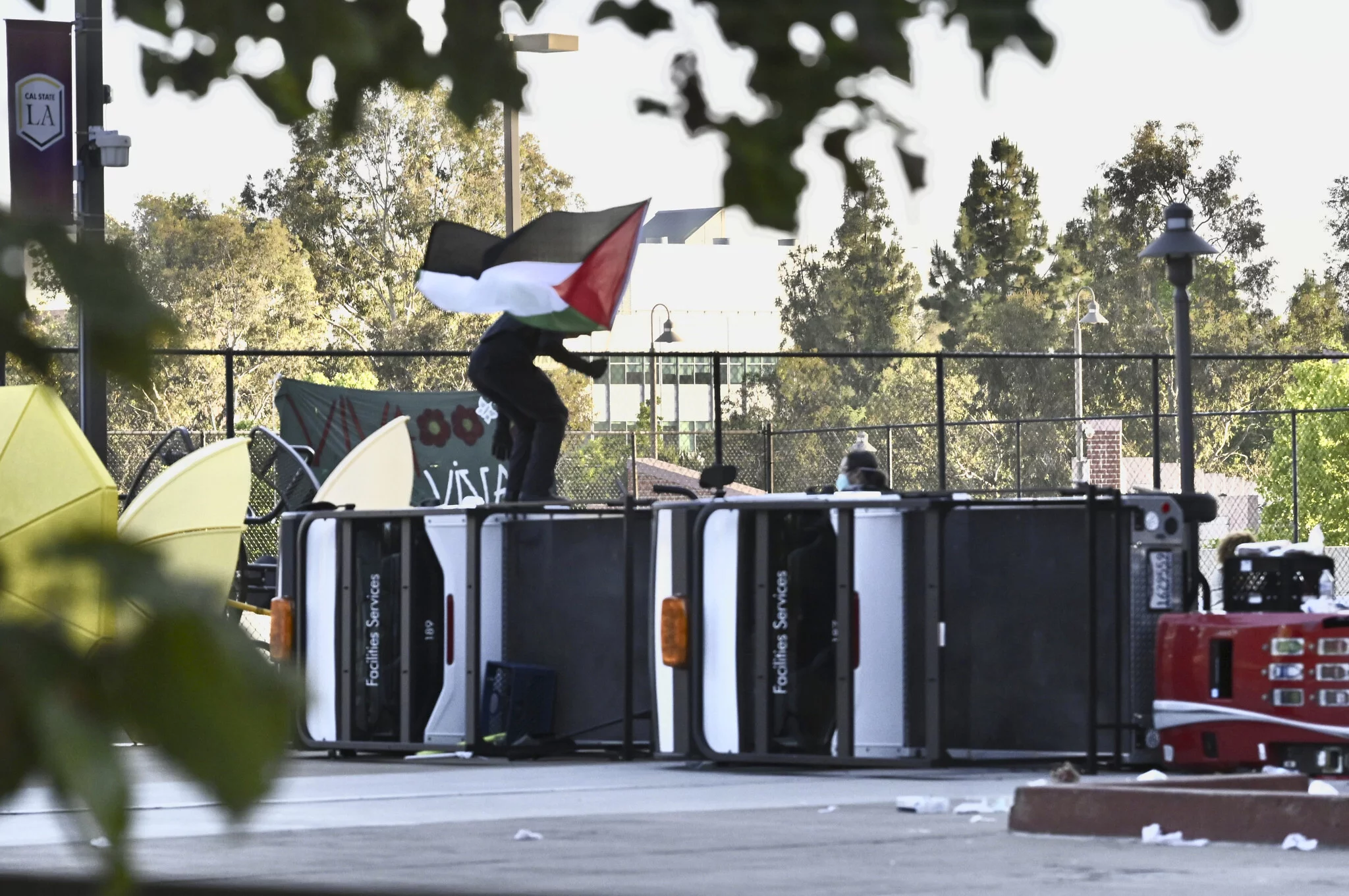 El presidente del campus de la Universidad Estatal de California, Los Ángeles, Berenecea Johnson Eanes, informó que tres empleados y un estudiante fueron agredidos durante la toma de un edificio administrativo por manifestantes pro-palestinos el miércoles, quienes dejaron daños considerables.