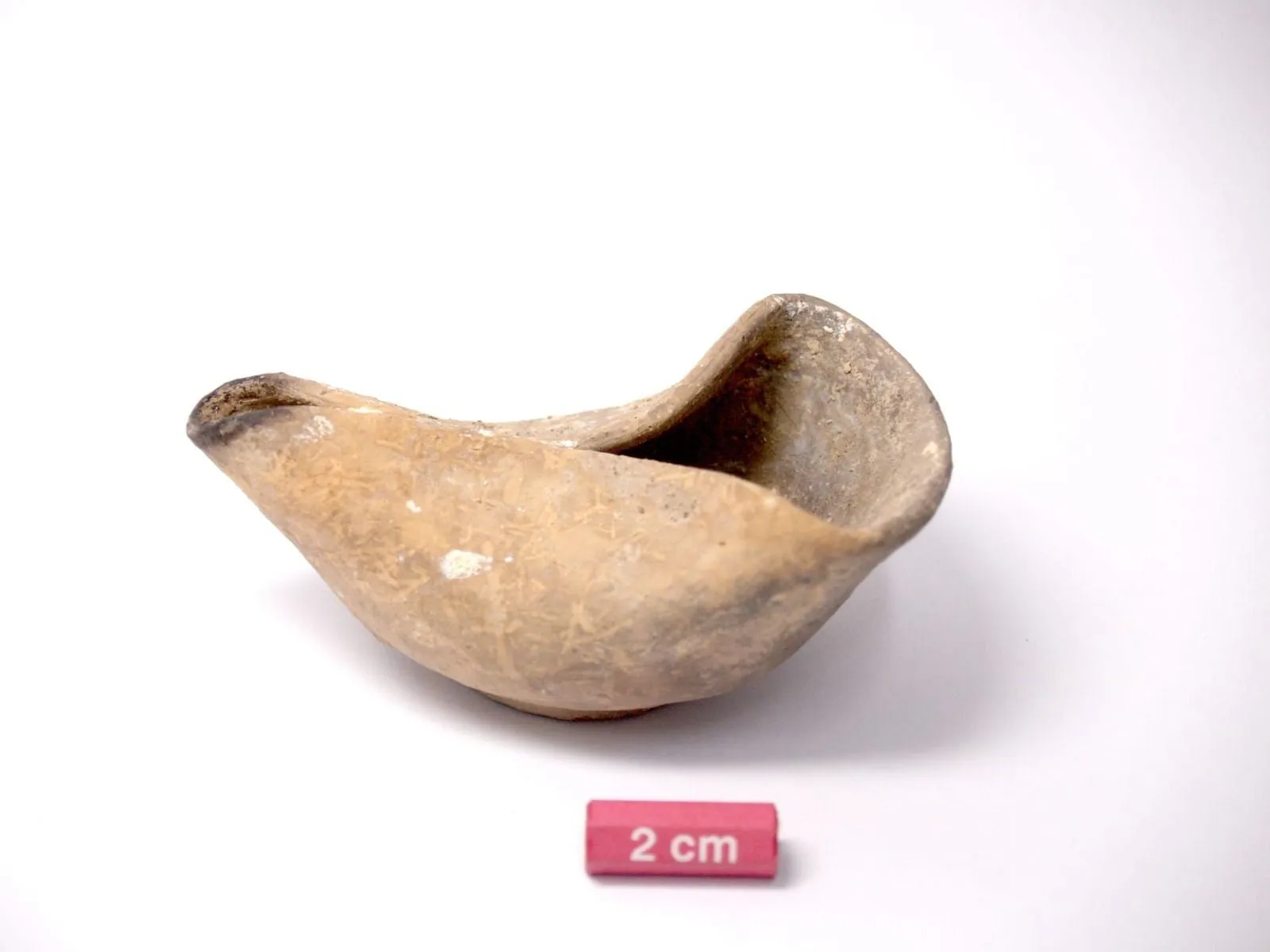 Una lámpara de arcilla del periodo asmoneo encontrada en Nebi Samuel, en Judea y Samaria, en un hallazgo hecho público el 15 de diciembre de 2025. (COGAT)