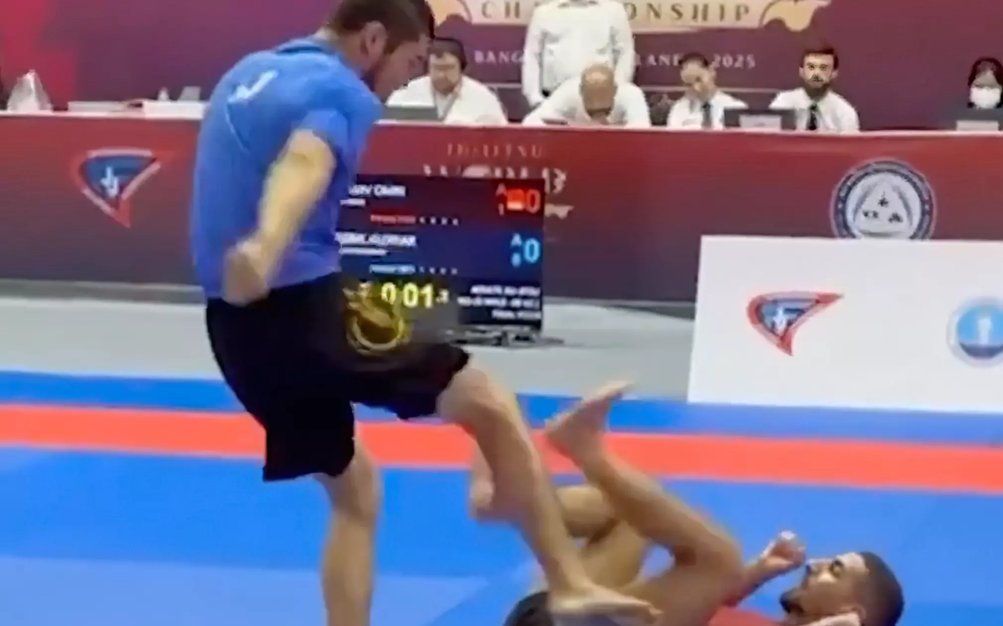 El israelí Omri Haviv obtuvo la medalla de oro en el Campeonato Mundial de Jiu-jitsu en Bangkok el viernes, después de que el kazajo Aldiyar Serik recibiera la descalificación por una patada ilegal y se negara a darle la mano. El desenlace cerró una final interrumpida por una falta clara.