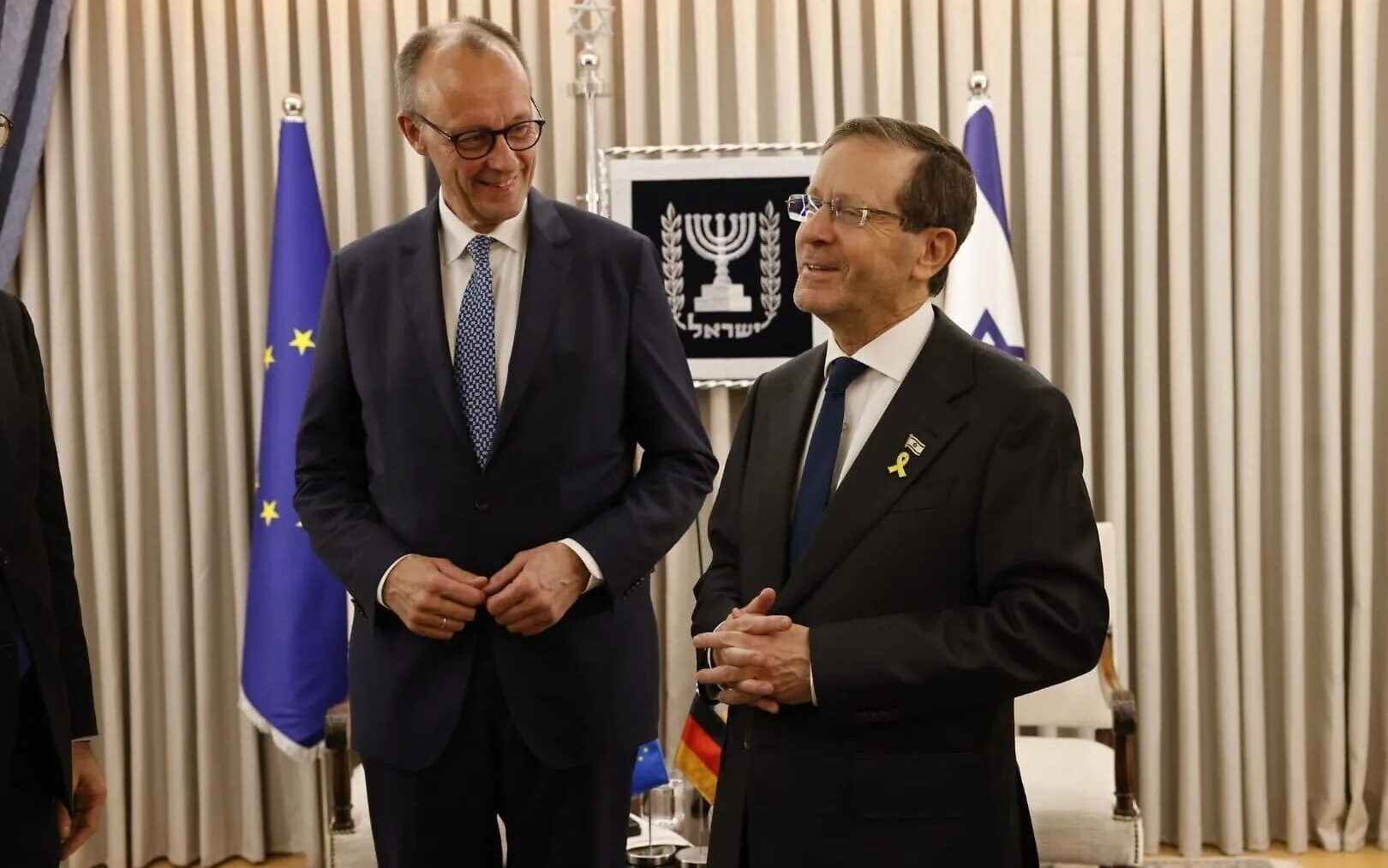 El presidente Isaac Herzog recibió al canciller alemán Friedrich Merz en su residencia oficial en Jerusalén, pocas horas después de su llegada a Israel para su primera visita desde que asumió el cargo.