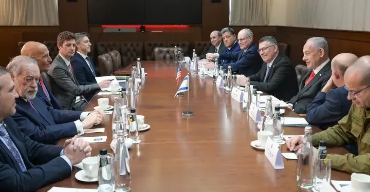 Netanyahu estuvo acompañado por el ministro de Asuntos Exteriores, Gideon Sa’ar; el asesor interino de Seguridad Nacional, Gil Reich; el secretario militar, mayor general Roman Gofman; y el embajador de Israel en Washington, Yechiel Leiter. Por parte estadounidense, estuvieron presentes el embajador Mike Huckabee y el asesor para Oriente Medio, Aryeh Lightstone.