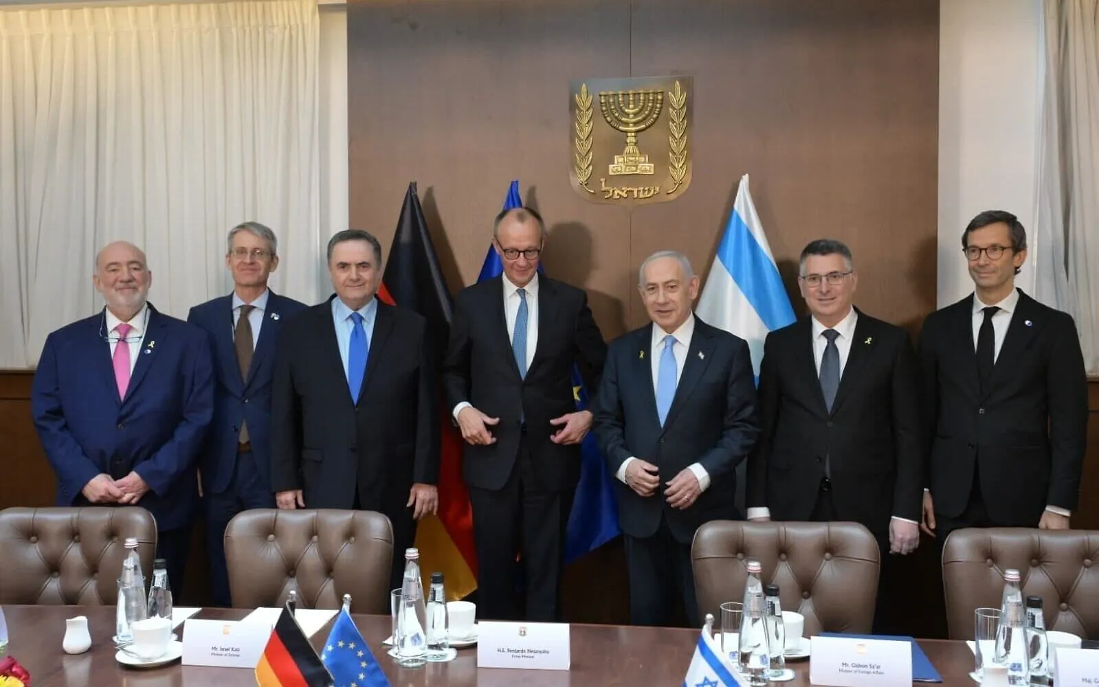 El primer ministro Benjamin Netanyahu y el canciller alemán Friedrich Merz celebran una reunión ampliada con altos funcionarios en la Oficina del primer ministro en Jerusalén, después del encuentro privado que mantuvieron esta mañana, según informó el despacho del mandatario israelí.