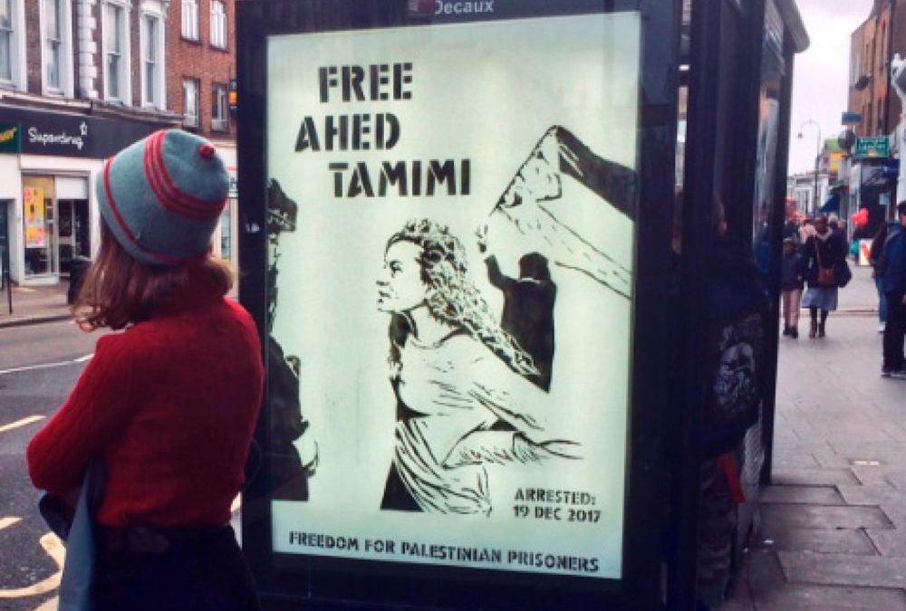 El póster de Libertad a Ahed Tamimi en una parada de autobuses en Londres, diciembre de 2017. Screengrab de @proteststencil