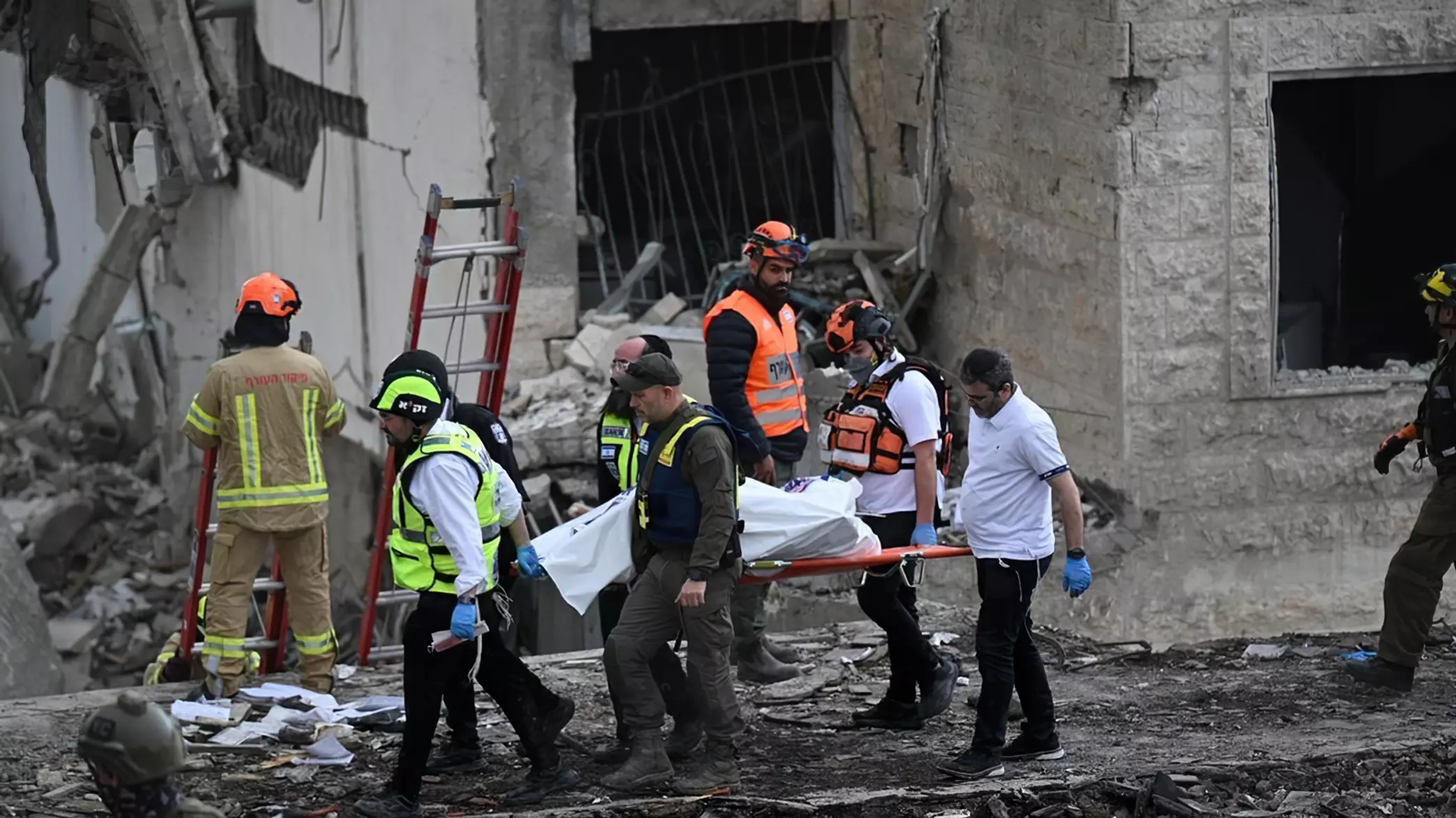 En una calle cercana, un voluntario de ZAKA avanzaba con un balde y suministros, aparentemente destinado a la tarea más dura: recoger cuerpos y restos humanos para asegurar un entierro conforme a los ritos. La escena se prolongaba entre escombros y fragmentos dispersos, como si el barrio hubiera sido desarmado pieza por pieza.