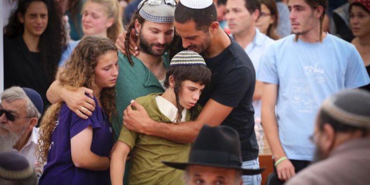 Javi, su esposa, fue herida de gravedad en el ataque; los dos hijos también resultaron heridos. Orit está junto a su hermano que la abraza, tratando de llenar con palabras el inmenso vacío de su corazón. Sollozando, agitada, ella habla. Orit da un discurso fúnebre en honor de su padre asesinado.