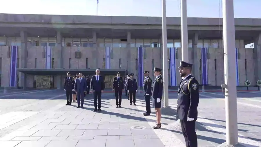 El presidente de la Knéset, Amir Ohana, encendió una lámpara conmemorativa en la entrada destinada a los legisladores y luego colocó una corona de flores en memoria de las víctimas civiles y militares del ataque de Hamás y de la guerra posterior.