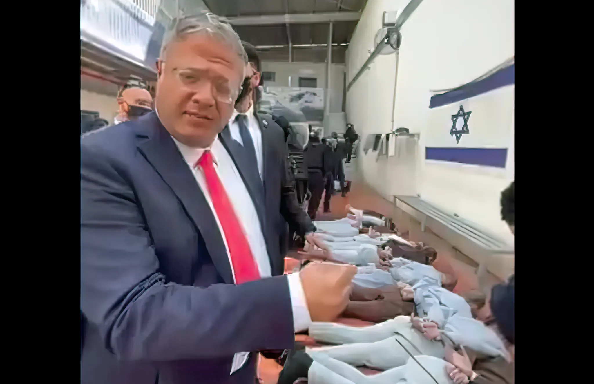 En las imágenes, compartidas en su canal personal de Telegram, el ministro y presidente del partido Otzma Yehudit se dirigió a la cámara y señaló a una docena de detenidos colocados frente a una bandera israelí.