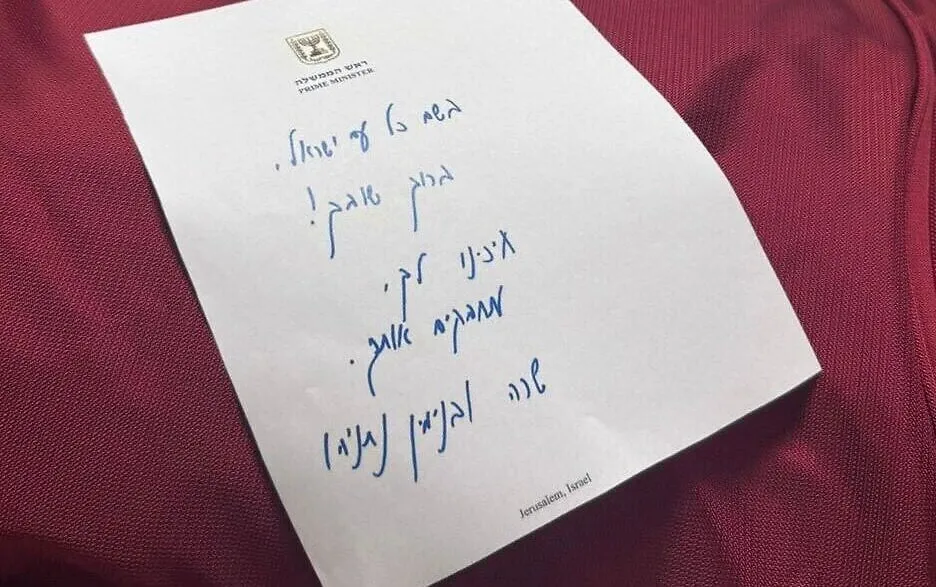 “En nombre de todo el pueblo de Israel, ¡bienvenidos de nuevo! Te hemos estado esperando y te abrazamos”, decían las notas.