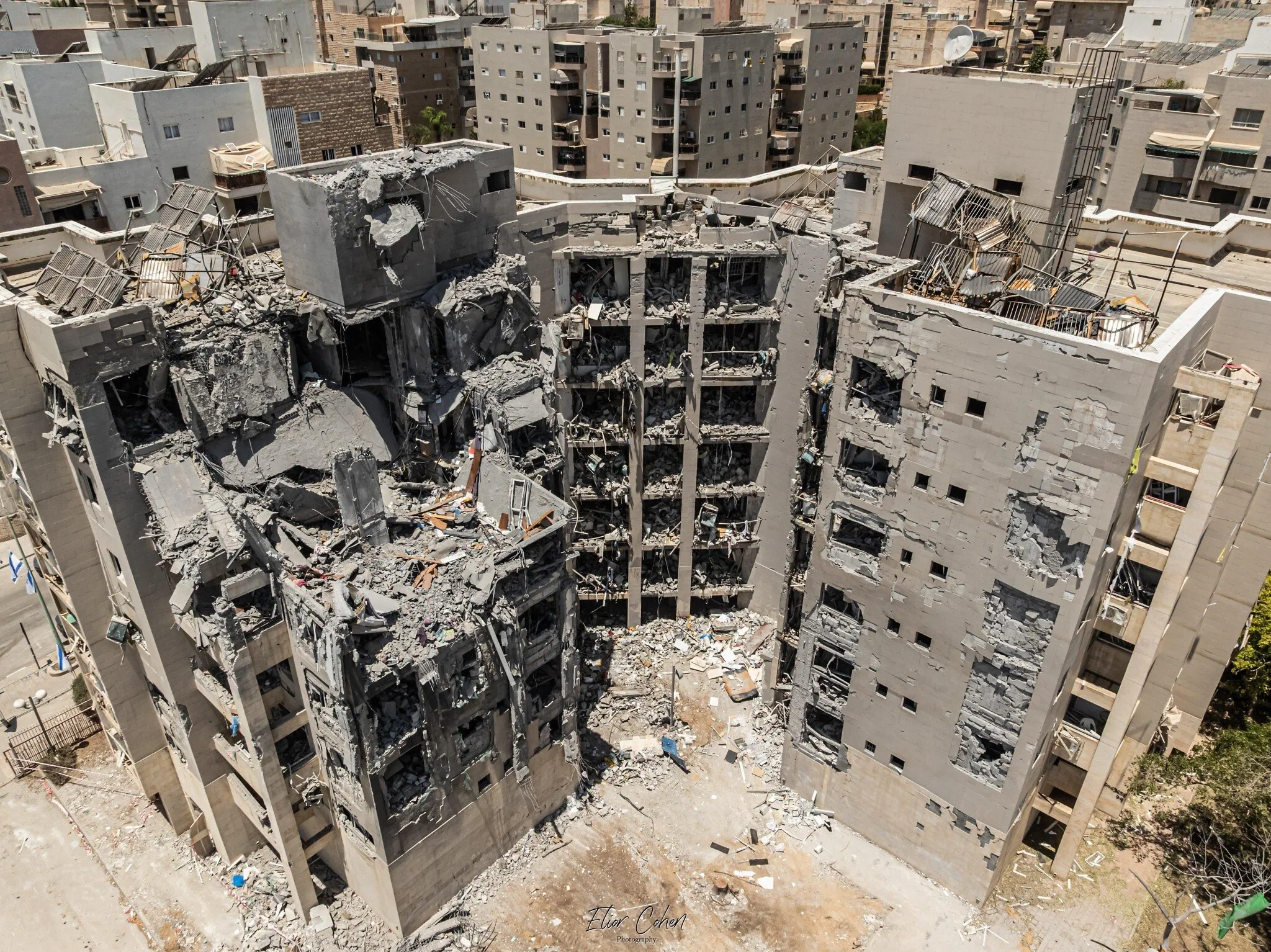 La escena del impacto de un misil balístico iraní en un edificio de apartamentos en Beersheba, días después del ataque, el 28 de junio de 2025 (Cortesía de Elior Cohen)