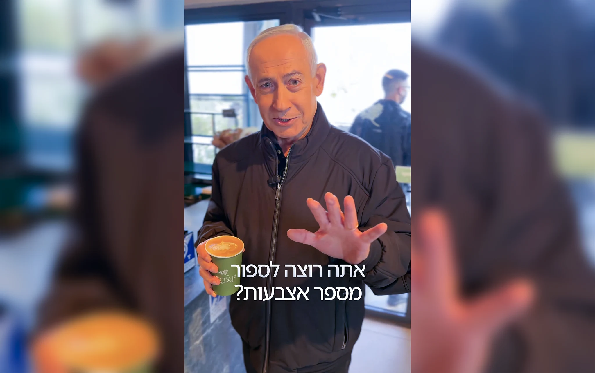 Mientras pide un café en una cafetería, dice: “Estoy muerto… por el café”, utilizando una expresión hebrea muy común que se traduce aproximadamente como “amar algo hasta la muerte”.