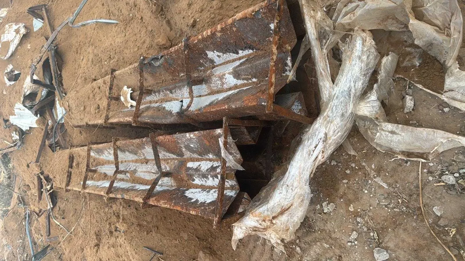 Los restos de dos lanzacohetes encontrados por el ejército en la ciudad de Gaza, que estaban preparados para ataques en el centro de Israel, en una foto publicada el 6 de octubre de 2025. (Fuerzas de Defensa de Israel)