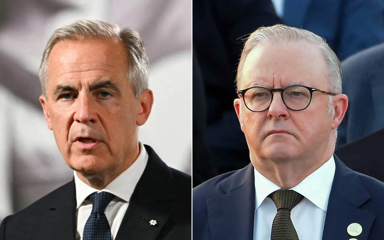El primer ministro canadiense, Mark Carney, y el primer ministro australiano, Anthony Albanese, anuncian que sus países reconocen a un Estado palestino independiente ante la Asamblea general de la ONU.