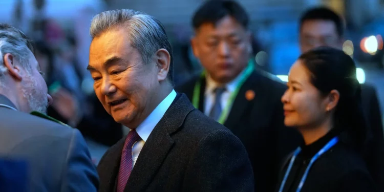 El ministro de Asuntos Exteriores de China, Wang Yi, llega a la Conferencia de Seguridad de Múnich, en Múnich (Alemania), el 13 de febrero de 2026. (Foto AP/Michael Probst)