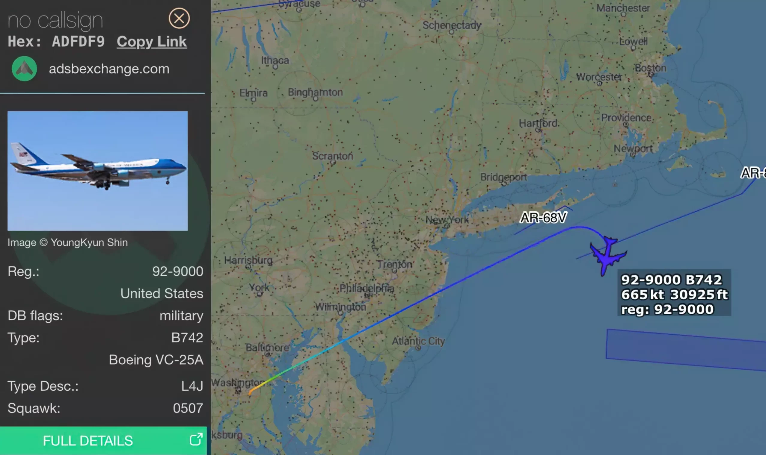 Tras elevarse, las luces de la cabina de prensa se apagaron de forma breve, relataron reporteros a bordo. El avión tenía como destino Davos, Suiza, para el Foro Económico Mundial. El retorno a Maryland ocurrió unos 45 minutos después de iniciar un trayecto previsto de 7,5 horas.