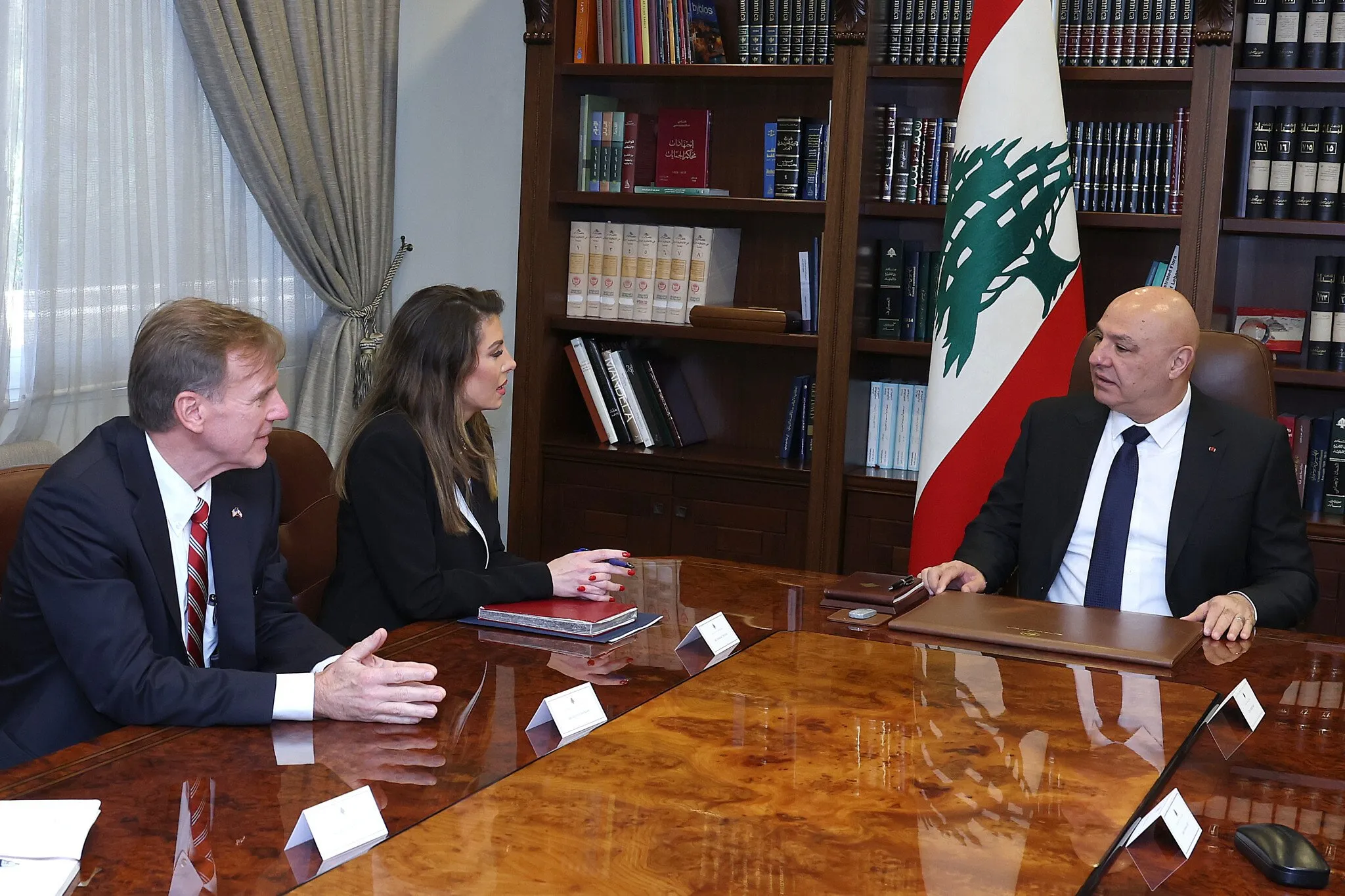 La reunión se celebró en el Palacio de Baabda pocos días después de que Washington sancionara a tres integrantes de Hezbolá acusados de mover fondos hacia la organización, lo que dio a la conversación un carácter operativo y no solo declarativo. Según reportes de agencias internacionales, la delegación estuvo encabezada por Sebastian Gorka, director senior de contraterrorismo del Consejo de Seguridad Nacional estadounidense.