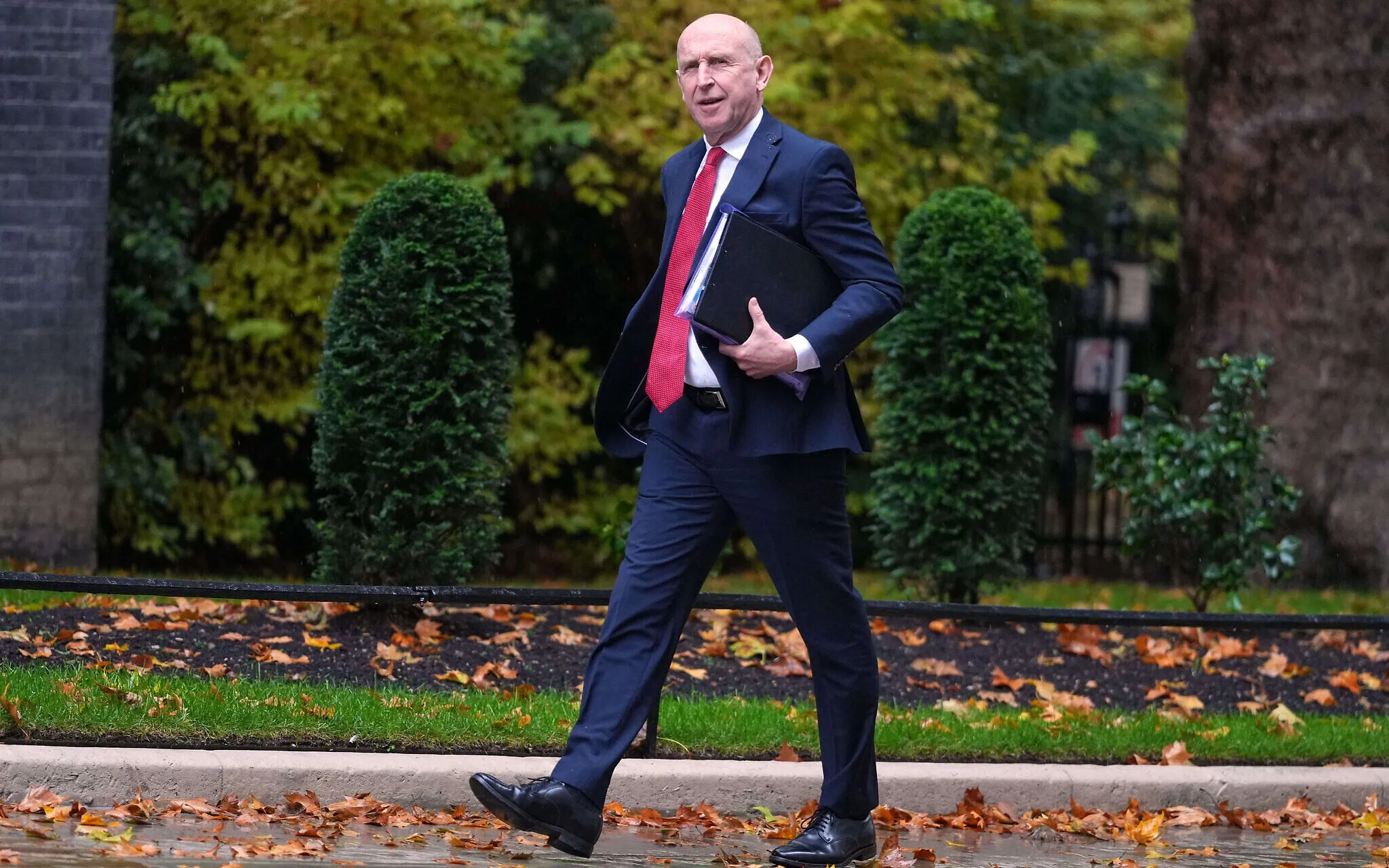 John Healey, secretario de Estado de Defensa británico, llega a una reunión del gabinete en Downing Street, Londres, el 20 de octubre de 2025. (AP/Kirsty Wigglesworth)