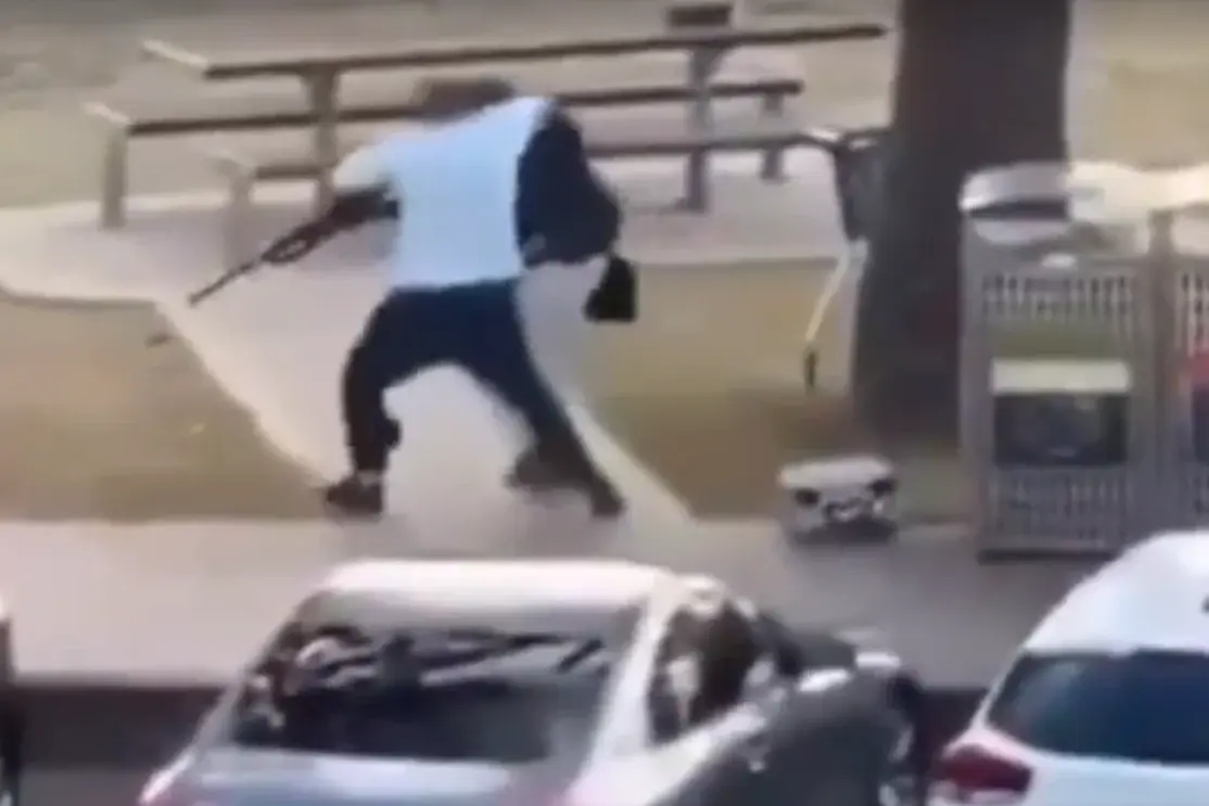 Captura de pantalla de Ahmed al Ahmed, de 43 años, dueño de una frutería, arrebatándole el arma a uno de los dos hombres armados que atacaron un evento de Janucá en la playa Bondi de Sídney, el 14 de diciembre de 2025. (Imágenes de X, utilizadas de acuerdo con la cláusula 27a de la ley de derechos de autor)