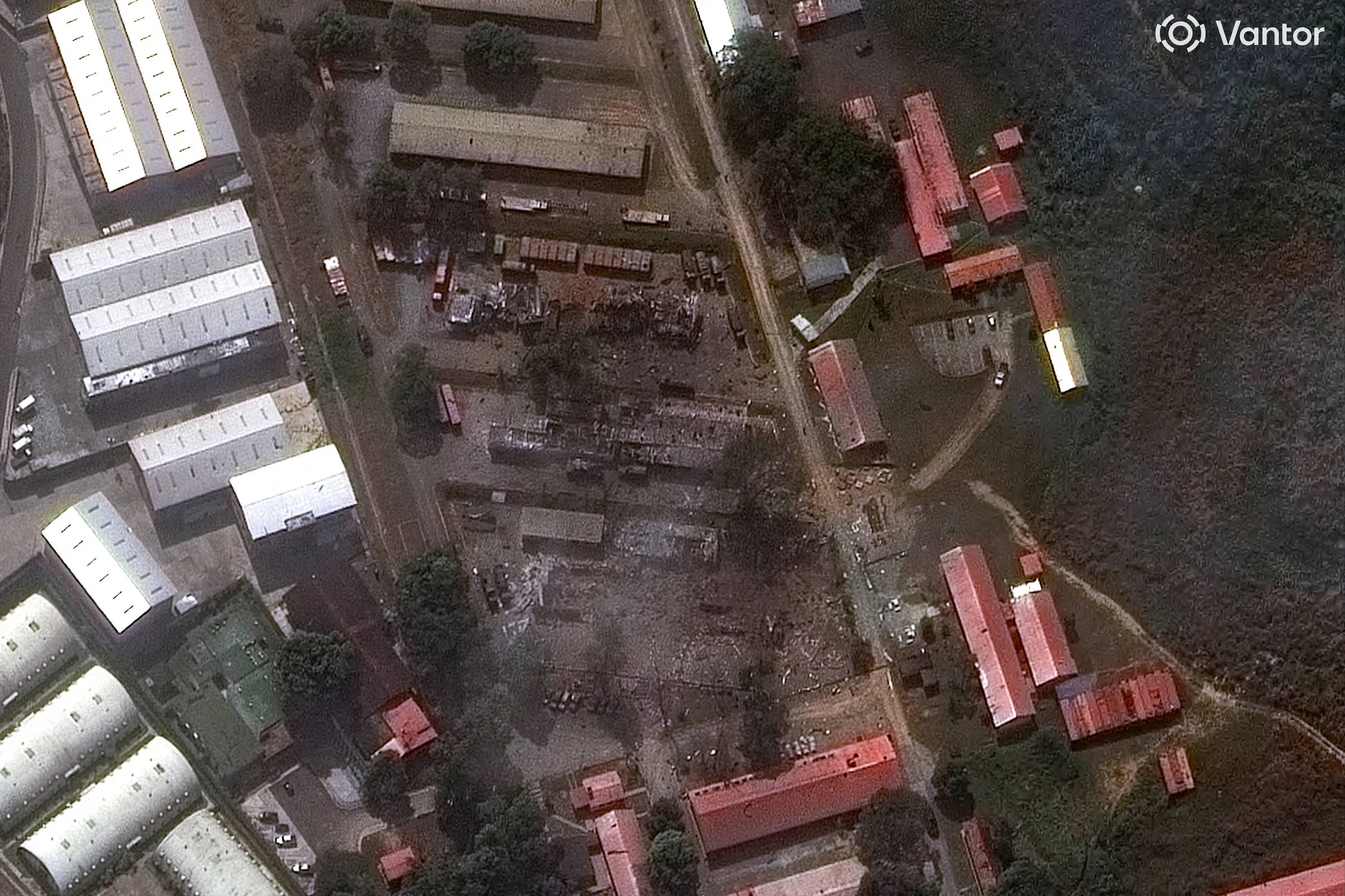 Imagen del incendio en Fuerte Tiuna, el complejo militar más grande de Venezuela, tras una serie de explosiones en Caracas, el 3 de enero de 2026. (Luis JAIMES / AFP)