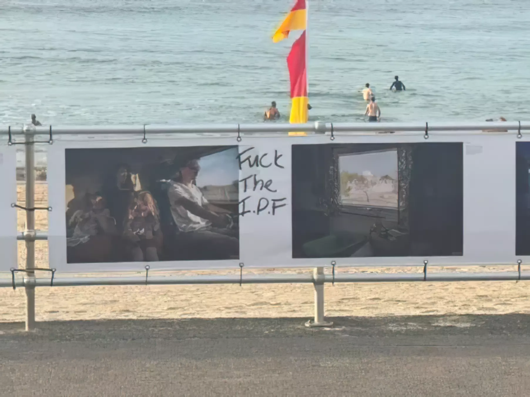 Frases como “Que se jodan las FDI” y “Liberen Palestina” aparecieron escritas en la concurrida playa. Las autoridades no consideran que los inmuebles afectados pertenezcan a la comunidad judía.