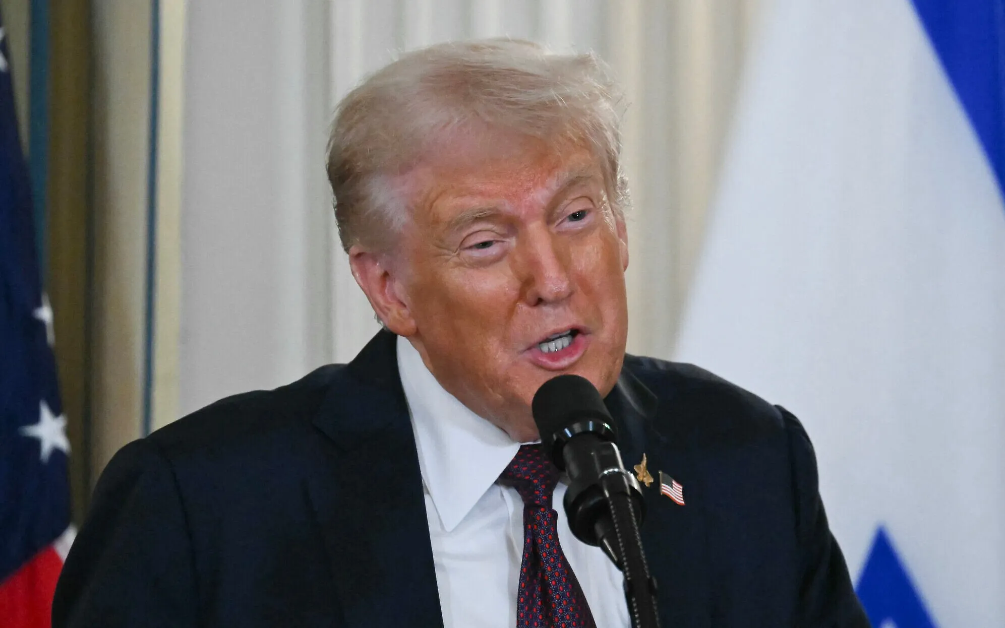 El presidente de Estados Unidos, Donald Trump, habla durante una conferencia de prensa con el primer ministro, Benjamin Netanyahu, en el Comedor de Estado de la Casa Blanca en Washington, DC, el 29 de septiembre de 2025. (ANDREW CABALLERO-REYNOLDS / AFP)