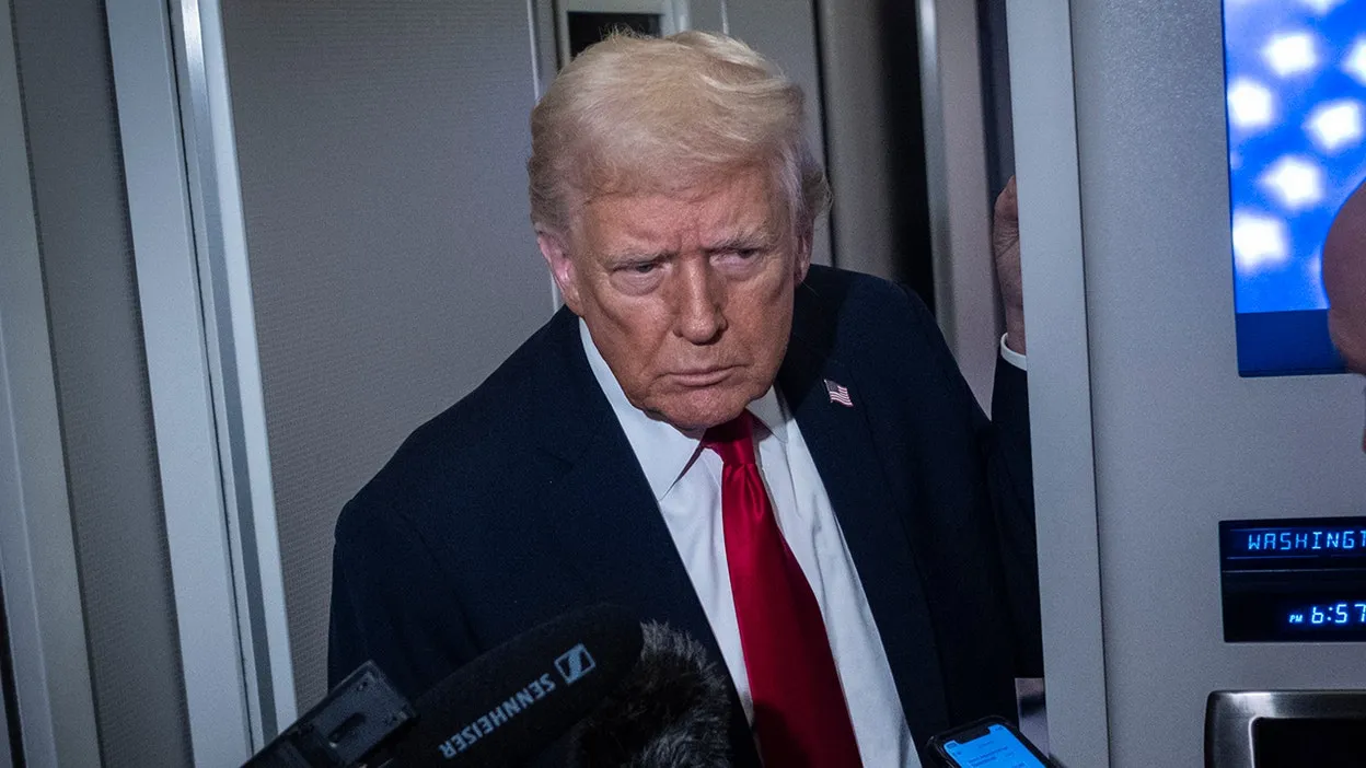 El presidente Donald Trump habla ante los medios a bordo del Air Force One el 25 de noviembre de 2025, en vuelo rumbo a Florida. (Crédito: Pete Marovich/Getty Images)