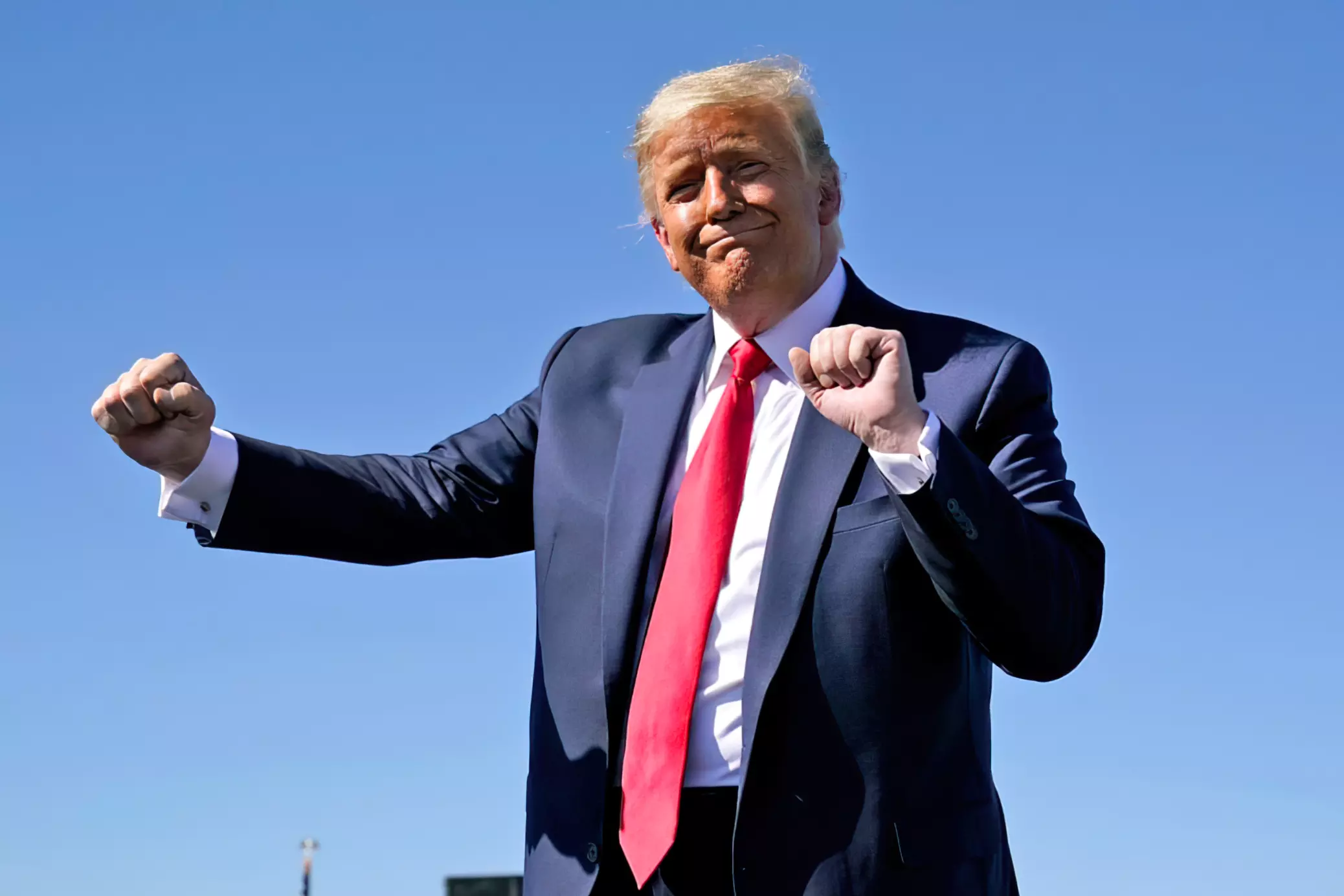 El presidente Donald Trump baila al salir de un mitin en el Aeropuerto Internacional de Tucson, en Tucson (Arizona), el 19 de octubre de 2020. Mandel Ngan / AFP - Getty Images