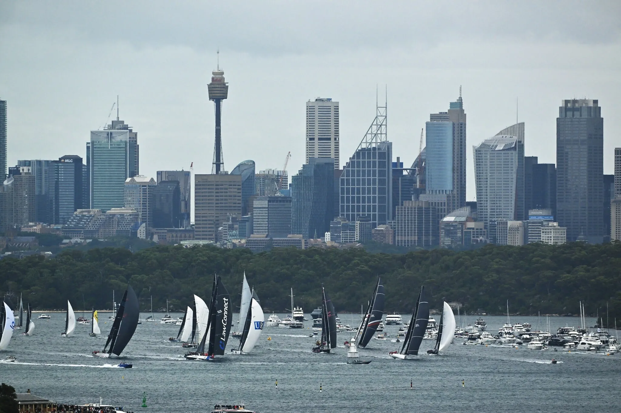 En una jornada veraniega fresca y gris en el puerto de Sídney, grandes grupos se concentran a lo largo de la costa o miran desde decenas de barcos. Un cañonazo marca la largada y pone en movimiento a la flota en la edición número 80 de la competencia.