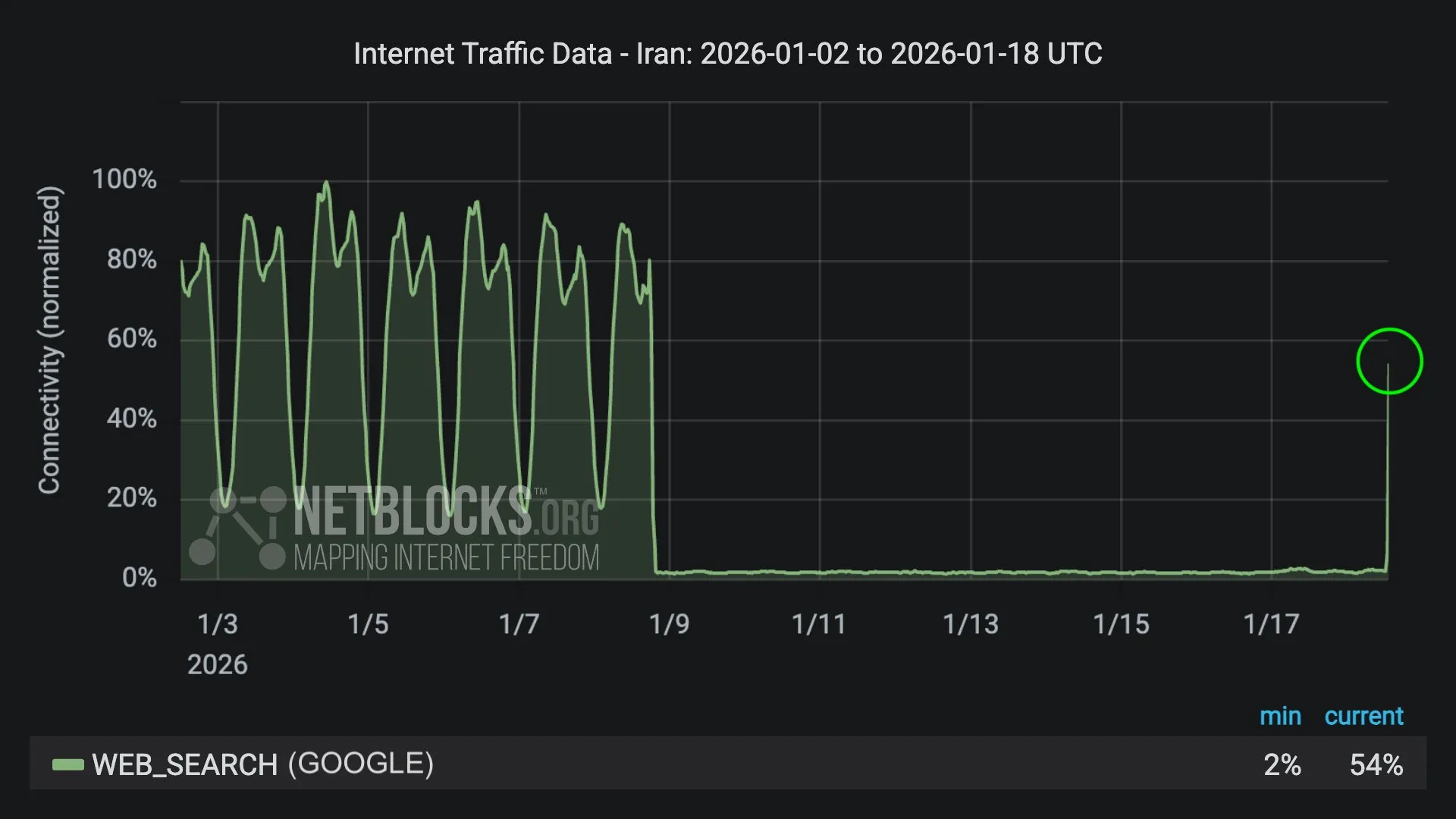 “Los datos de tráfico indican un retorno significativo a algunos servicios en línea, incluido Google, lo que sugiere que se ha habilitado un acceso fuertemente filtrado, lo que corrobora los informes de los usuarios sobre una restauración parcial”, afirma Netblocks en una publicación en las redes sociales.