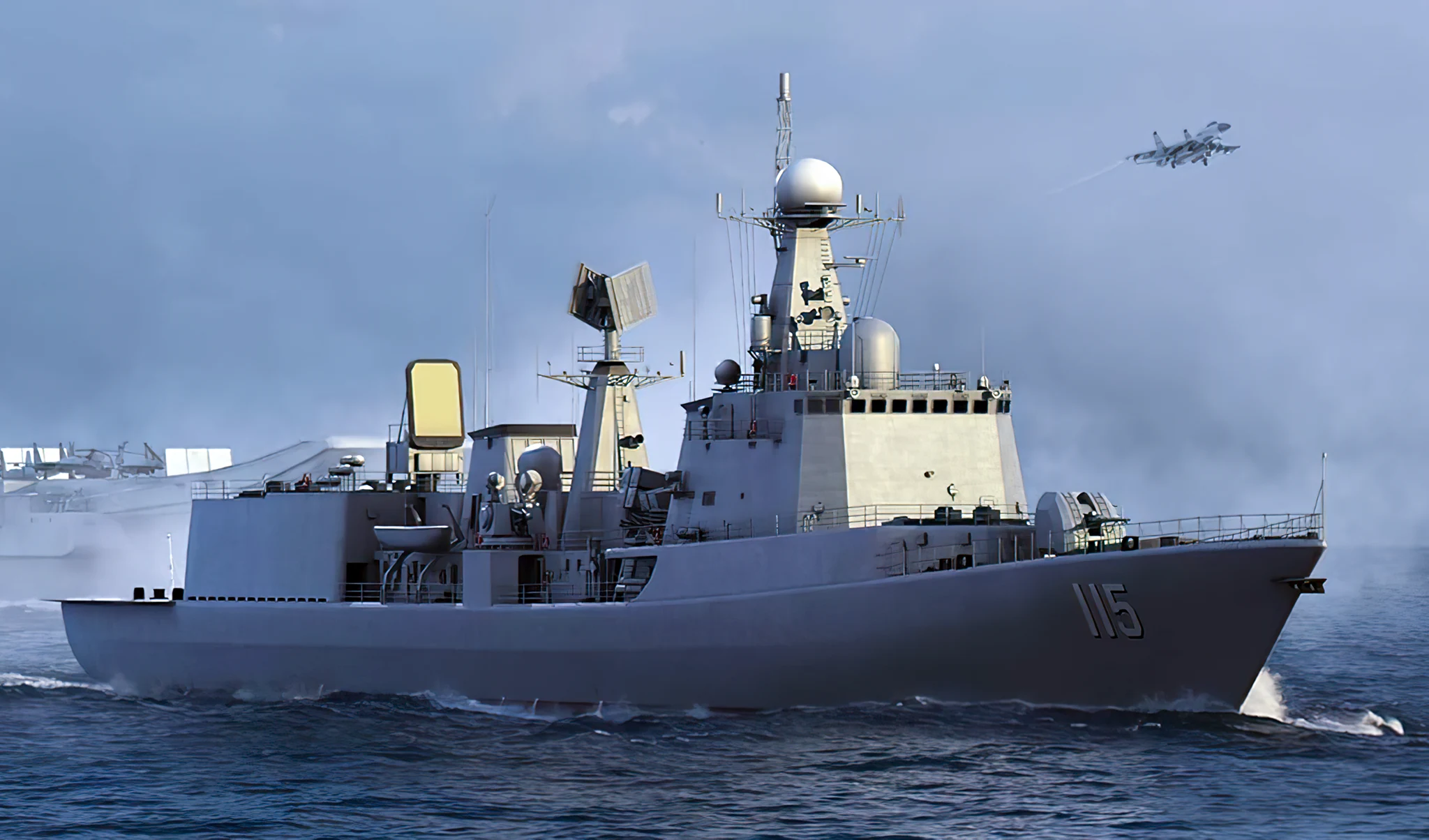 La modernización se alinea con una estrategia de estandarización mediante sistemas nacionales. Una tendencia similar alcanzó a destructores Sovremenny adquiridos a Rusia, actualizados en la década de 2010 con misiles antibuque YJ-12 chinos en lugar de Moskit. En paralelo, la PLAN opera más de 40 destructores; las clases Tipo 052D, con 25 unidades, y Tipo 055, con ocho unidades, concentran su componente principal dentro de grupos de tarea de largo alcance.