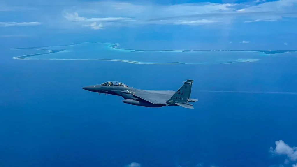 El 19 de mayo, The War Zone indicó, según un funcionario de defensa, que había seis F-15E en la isla y presentó imágenes satelitales que, tras su revisión, mostraron una progresión desde cuatro aparatos visibles el 16 de mayo a seis el 19 de mayo. La publicación asoció la llegada con la misión de defensa de la isla y con la presencia temporal de bombarderos, así como con la ruta de traslado desde Kadena.