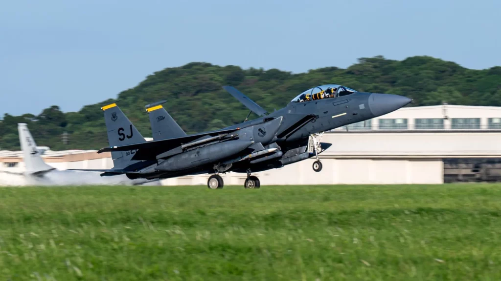 Entre el 3 y el 6 de abril de 2025, llegaron a Kadena F-15E y un contingente de F-35A dentro del esquema de rotaciones que sostiene la capacidad de caza en Okinawa tras el retiro de los F-15C/D y durante la espera de treinta y seis F-15EX. Los F-35A procedían del 355th Expeditionary Fighter Squadron de Eielson AFB, Alaska, y los F-15E del 336th EFS de Seymour Johnson AFB, Carolina del Norte.