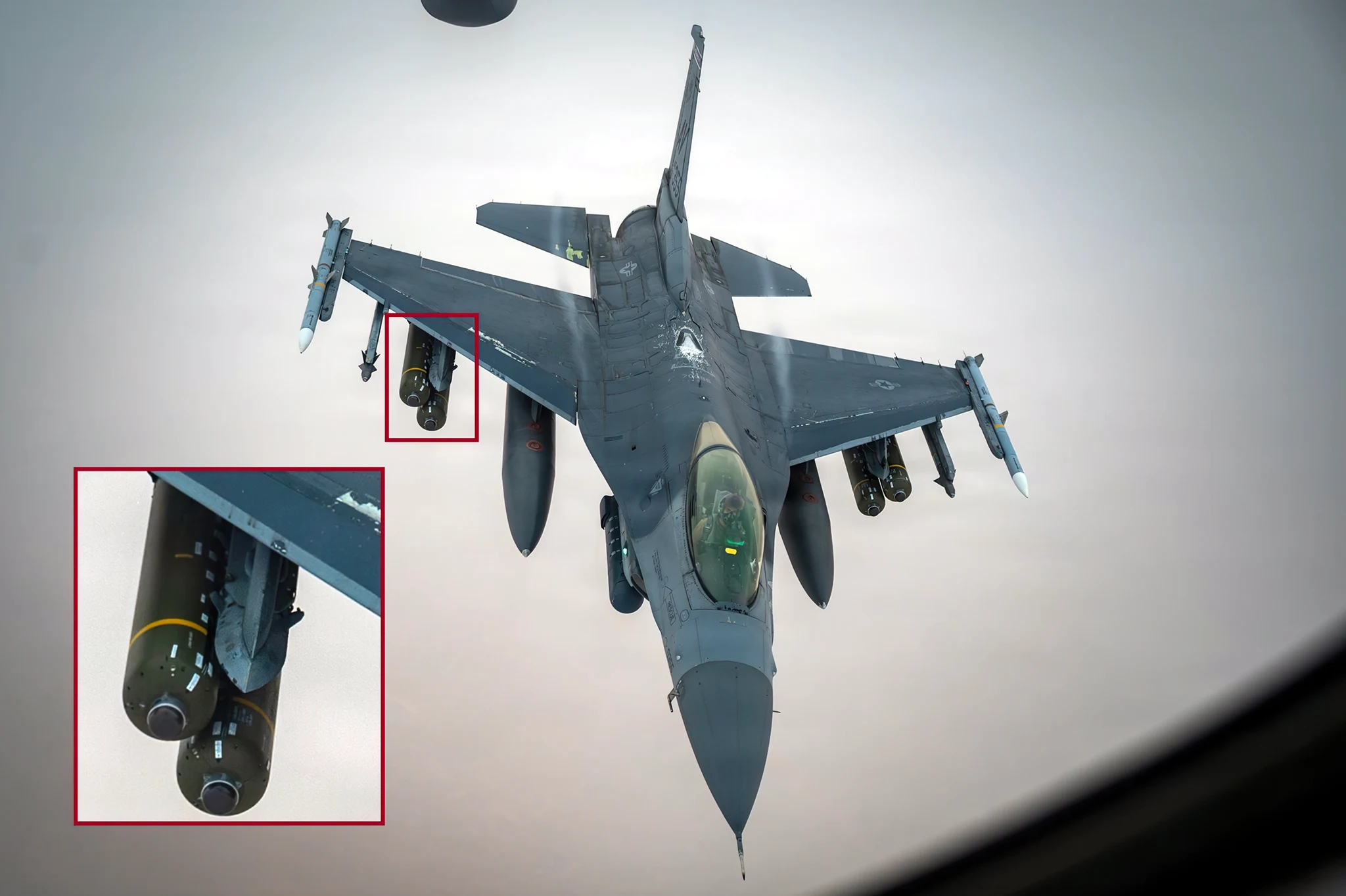 Aunque la fotografía se difundió el 2 de abril de 2026 por el Servicio de Distribución de Información Visual de Defensa de Estados Unidos, el interés se concentró en la carga que llevaba el F-16 Fighting Falcon de la Fuerza Aérea de EE. UU. sobre el área de responsabilidad del Comando Central. Bajo las alas aparecían cuatro municiones dispensadoras, dos por cada lado, en una configuración poco habitual y asociada a misiones contra medios terrestres o de negación de área.