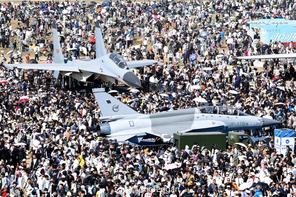 El evento incluyó demostraciones de vuelo de equipos acrobáticos como el Bayi y el Red Falcon, con ocho JL-8 y seis J-10 respectivamente. Entre los motores debutantes figuró un turbofan de alto índice de derivación para transportes grandes, la serie Taihang con vectorización de empuje y el F918 para drones de alta altitud, aunque ninguno se vinculó directamente al JF-17B en las presentaciones.