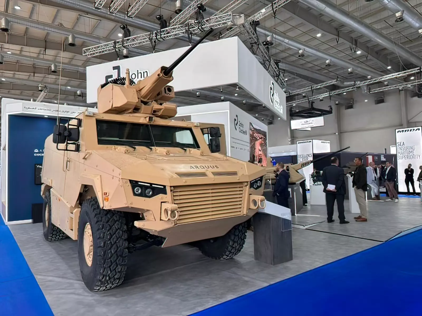 En esa línea, la combinación exhibida en Riad apunta a un segmento que gana peso en adquisiciones recientes: vehículos 4×4 que ya no actúan solo como transporte protegido, sino como nodos de apoyo inmediato con capacidad de batir objetivos con precisión desde el interior del blindaje, con sensores día/noche y arquitectura digital preparada para integrarse en redes de mando y control. John Cockerill enmarcó ese enfoque en su cartera posterior a la adquisición de Arquus, con el objetivo de ofrecer paquetes integrados de vehículo, sistema de armas y servicios asociados.