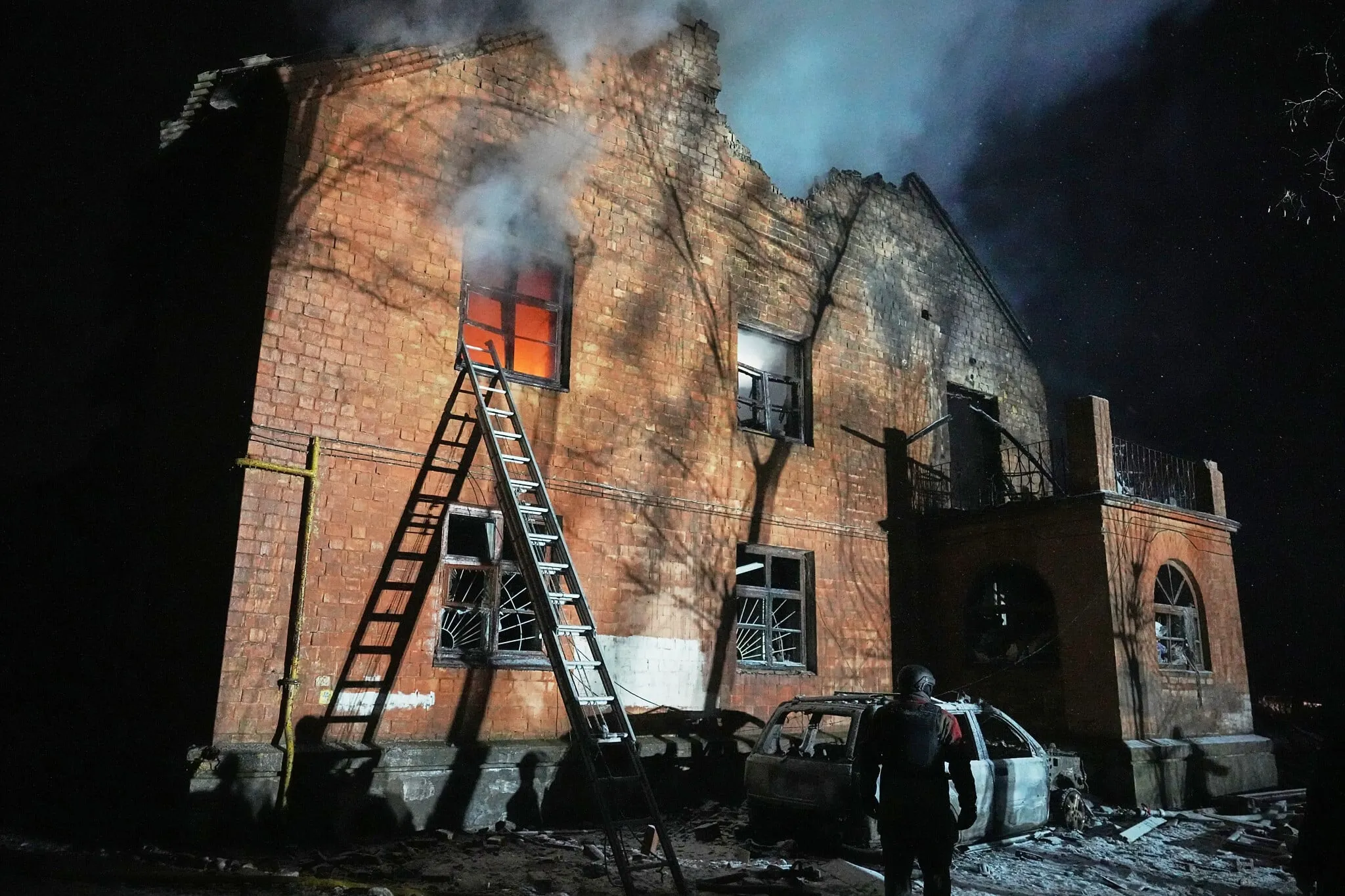 Varios distritos resultaron afectados, de acuerdo con Tkachenko. En el distrito de Desnyanskyi, un dron impactó el techo de un edificio de varios pisos y dañó con severidad los dos primeros niveles de otro inmueble residencial. En el distrito de Dnipro, restos de un dron alcanzaron un edificio de gran altura y provocaron un incendio. Dmytro Karpenko, de 45 años, relató que las ventanas de su vivienda quedaron destrozadas y que corrió a ayudar a un vecino.