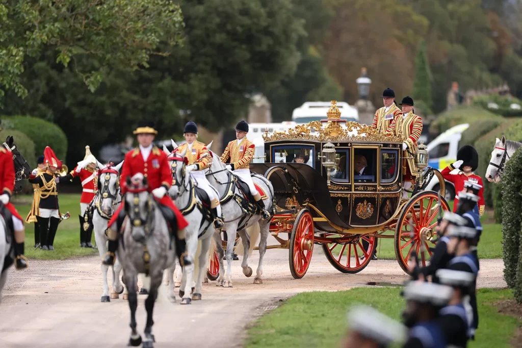 El desfile militar en los terrenos de Windsor concluyó con una pasada aérea del equipo acrobático Red Arrows de la Royal Air Force. Inicialmente estaba prevista la participación de cazas F-35 Lightning II de las Fuerzas Aéreas estadounidense y británica, pero fue cancelada debido a la nubosidad baja. Aunque el F-35 es plenamente capaz de operar en condiciones meteorológicas adversas, el riesgo adicional no siempre se considera justificable en tiempos de paz. Por su parte, los Red Arrows realizan prácticas regulares de vuelo en formación durante todo el año, incluso con visibilidad reducida, lo que les permite adaptarse mejor a condiciones climáticas difíciles.
