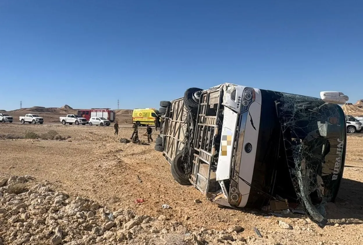 Un autobús de transporte volcó esta mañana en la carretera 40, en el tramo entre Mitzpé Ramon en dirección a Shdema. Según un informe preliminar desde el lugar, dos soldados quedaron atrapados y fueron rescatados del autobús. Equipos del Magen David Adom (MDA) evacuaron en helicóptero al Hospital Soroka a un joven de unos 20 años y a un hombre de unos 35 en estado moderado, con una lesión en la espalda. Otros equipos del MDA evacuaron al Hospital Soroka a 19 soldados heridos leves.