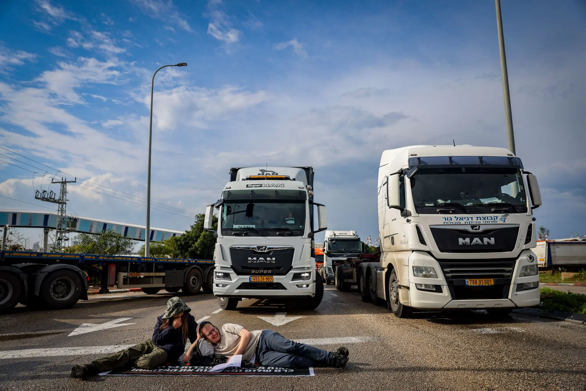 Ilustrativo: Activistas bloquean la entrada al puerto de Ashdod durante una protesta contra la entrada de camiones de ayuda a la Franja de Gaza, el 1 de febrero de 2024 (Foto de Chaim Goldberg/Flash90)