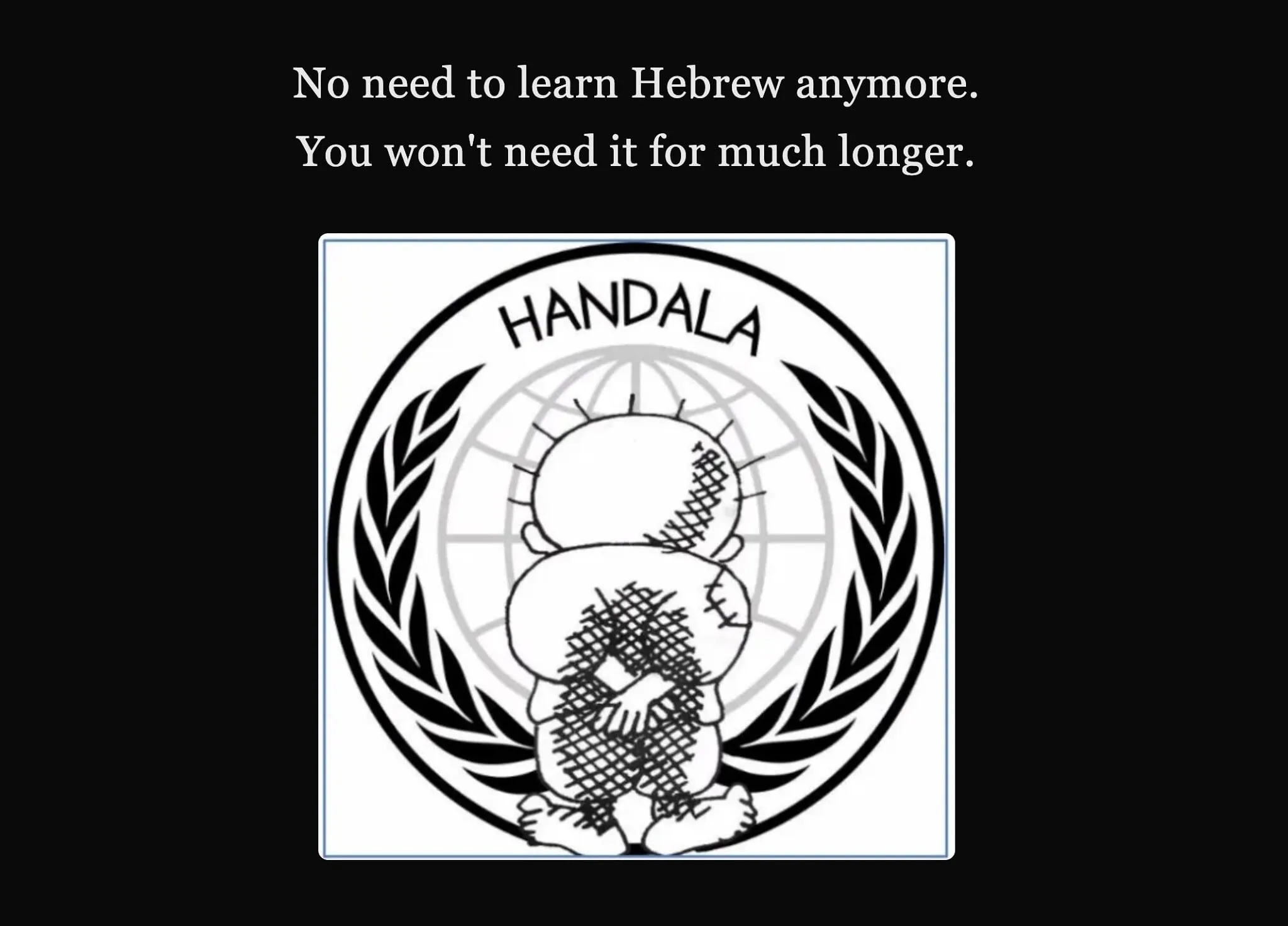 Las versiones en hebreo e inglés de la página de la academia redirigen a un mensaje que dice: “Ya no hace falta aprender hebreo. No lo necesitarán por mucho más tiempo”.