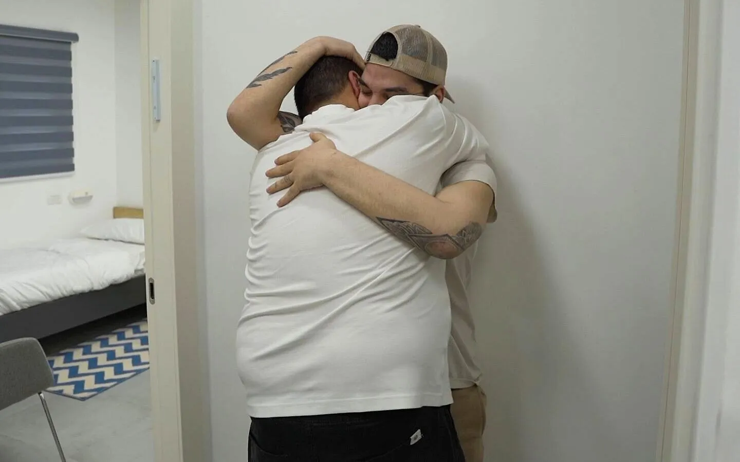 Yosef-Haim Ohana se reúne con su padre después de haber sido rehén en Gaza durante más de dos años el 13 de octubre de 2025 (Fuerzas de Defensa de Israel)