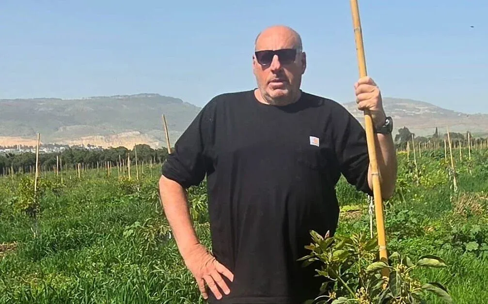 Ofer Moskovitz se encuentra en su plantación de aguacates el 12 de marzo de 2026, con vistas a la frontera con el Líbano. (Cortesía)