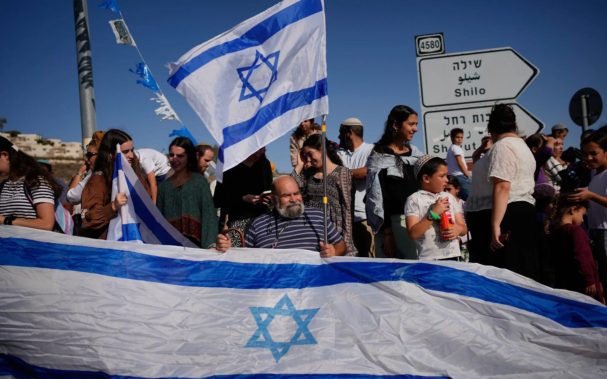 Decenas de israelíes, en su mayoría jóvenes, se congregan en las carreteras que conducen al asentamiento israelí de Shilo, en Judea y Samaria, para dar la bienvenida al exrehén Avinatan Or durante su regreso a casa.