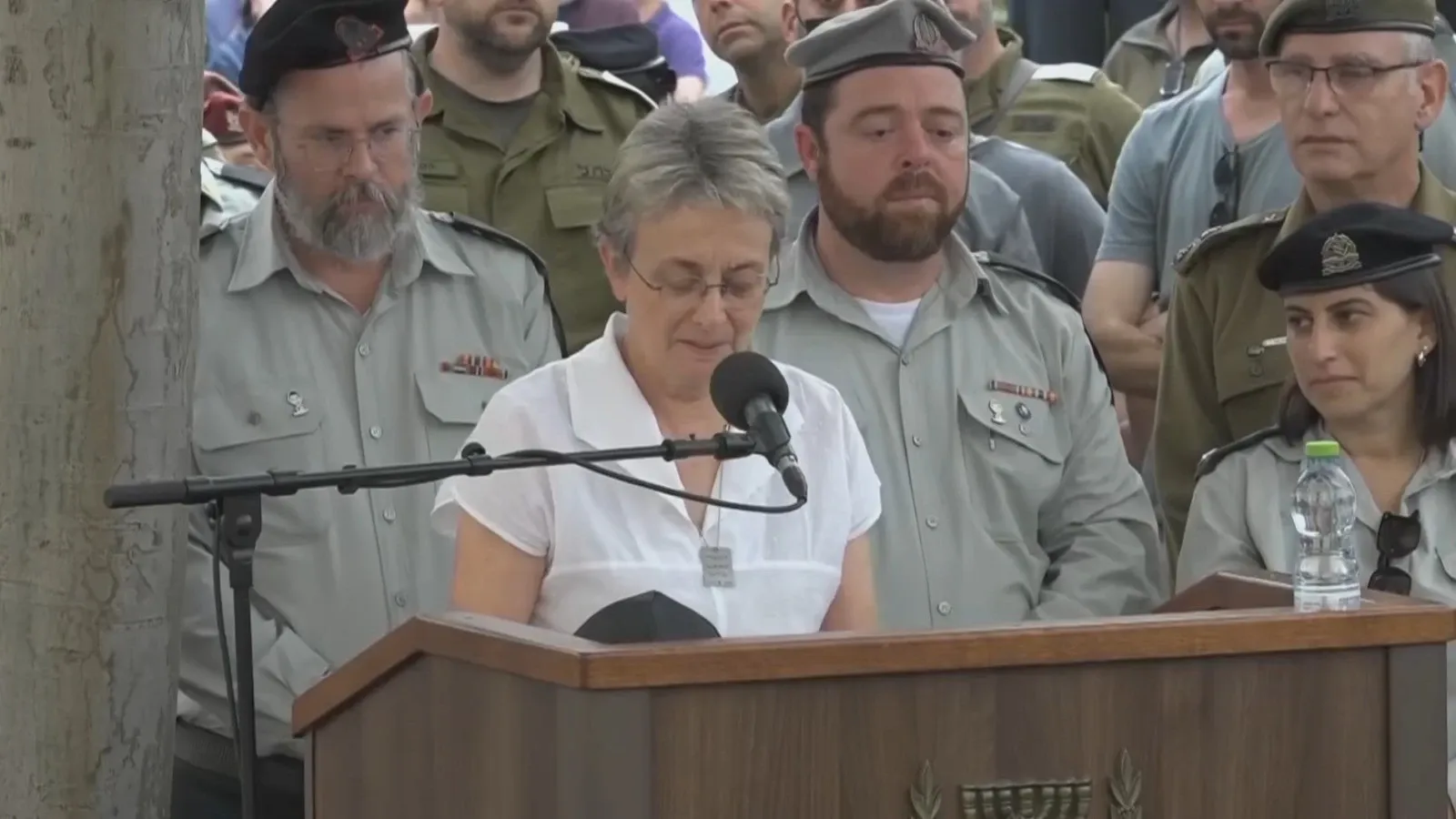 Leah Goldin toma la palabra en el funeral de su hijo, el soldado caído Hadar Goldin, y expresa su gratitud a todos los que lograron traerlo de vuelta.