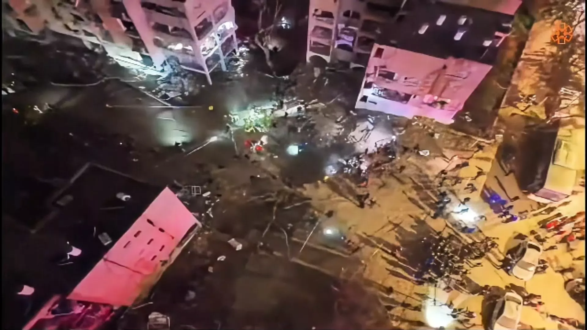 Las imágenes aéreas captadas por un dron del servicio de emergencias United Hatzalah muestran el punto donde impactó el misil balístico iraní lanzado contra la ciudad de Arad, en el sur de Israel, un ataque que dejó 64 heridos y provocó daños de consideración entre varios edificios residenciales.