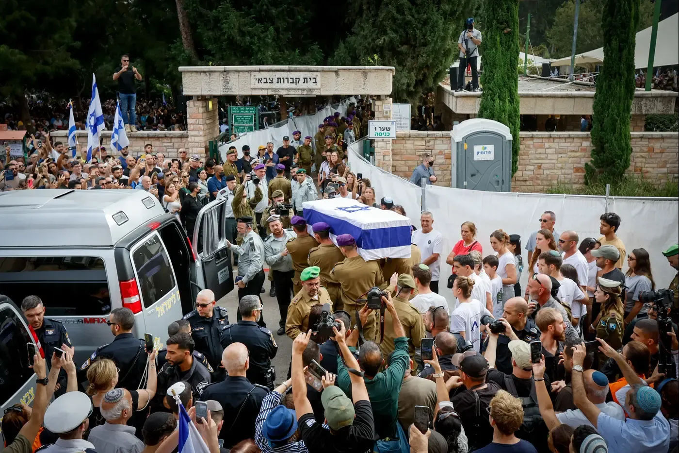 Decenas de miles acudieron al funeral del teniente Hadar Goldin, el soldado caído cuyo cuerpo Israel recibió el domingo tras 11 años de cautiverio. El sepelio tiene lugar en el cementerio militar de Kfar Saba, la ciudad donde nació y creció y donde residen sus padres.