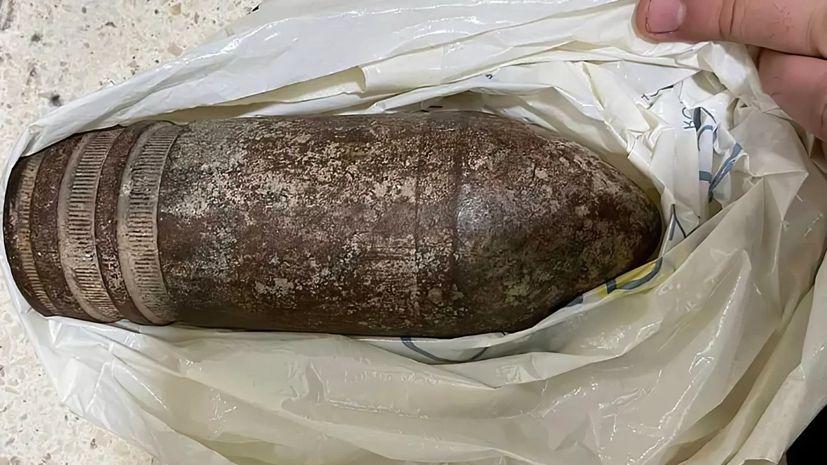 La Autoridad Aeroportuaria publicó una foto del artefacto oxidado, que parecía ser parte de un proyectil de artillería, envuelto en una bolsa de plástico.