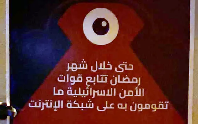 “El mes de Ramadán no es una excepción: las fuerzas de inteligencia israelíes monitorean lo que ustedes hacen en internet”, señala el volante. “Han sido advertidos”.