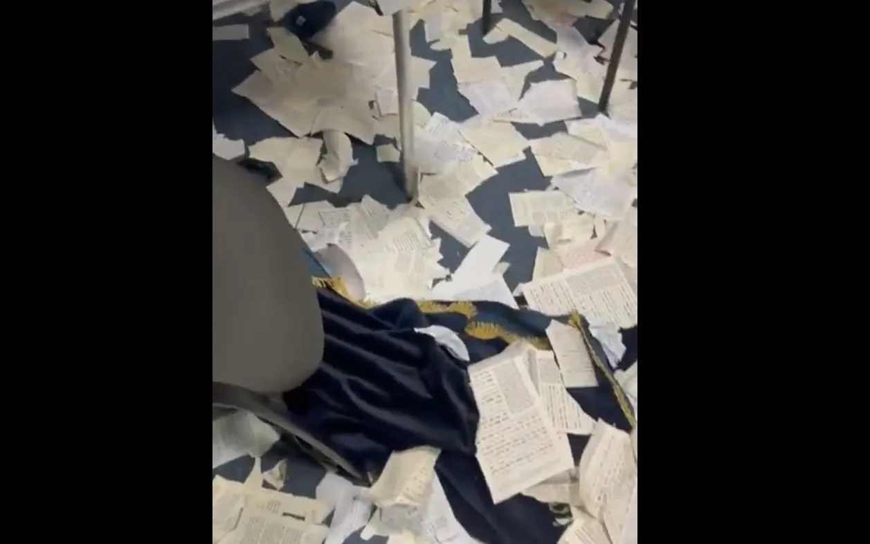Entre los daños se encontraron al menos dos rollos de la Torá, habitualmente conservados con gran reverencia dentro del arca, tirados en el piso junto con otros objetos rituales.