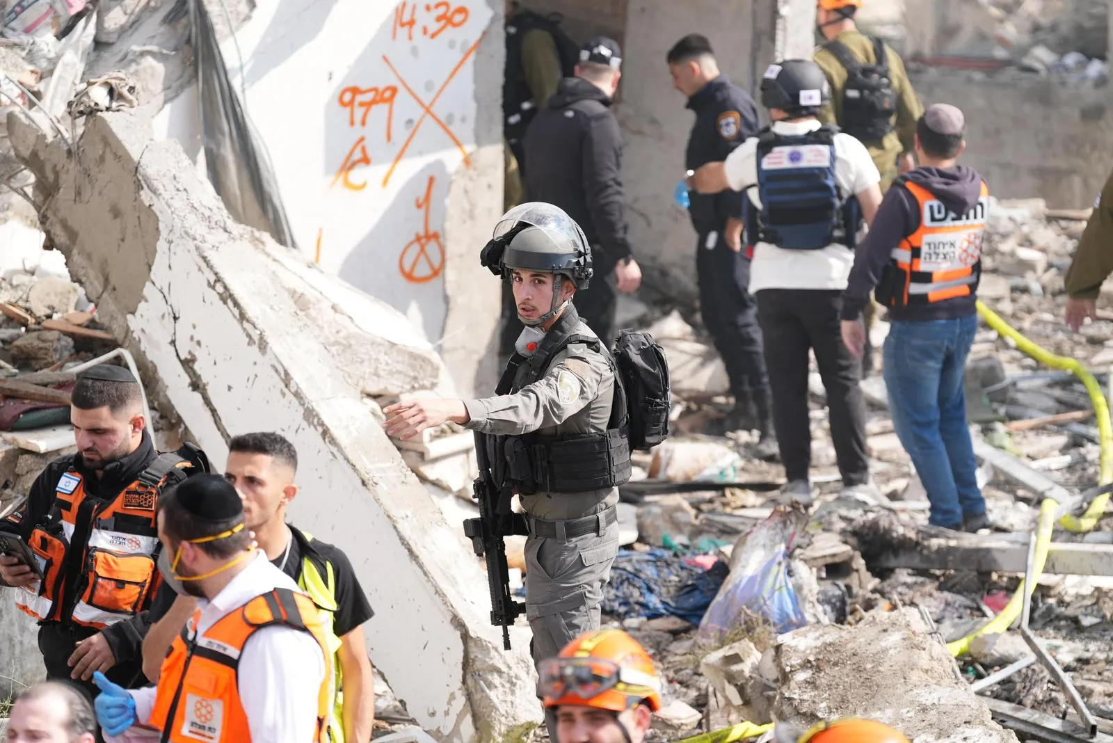 Equipos de bomberos y rescate del distrito de Jerusalén continúan operando en el lugar y extraen víctimas de los escombros junto con cientos de policías, soldados del Ejército de Defensa de Israel y voluntarios adicionales en la dura escena que incluye cientos de metros de destrucción total.