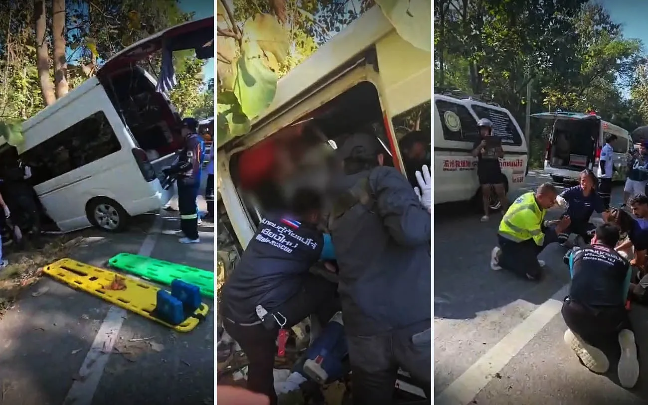 El diario tailandés Khaosod señaló que el minibús llevaba a siete personas, todas extranjeras, y que todas resultaron heridas. Una investigación preliminar apunta a que el conductor intentó adelantar a otro vehículo, perdió el control, salió de la carretera y chocó contra un árbol.